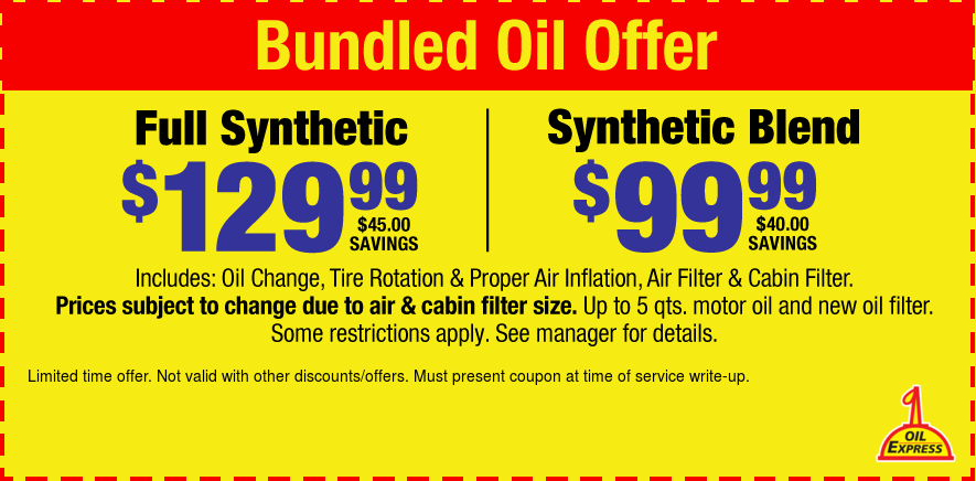 $129.99 Full Synthetic or Synthetic Blend $99.99